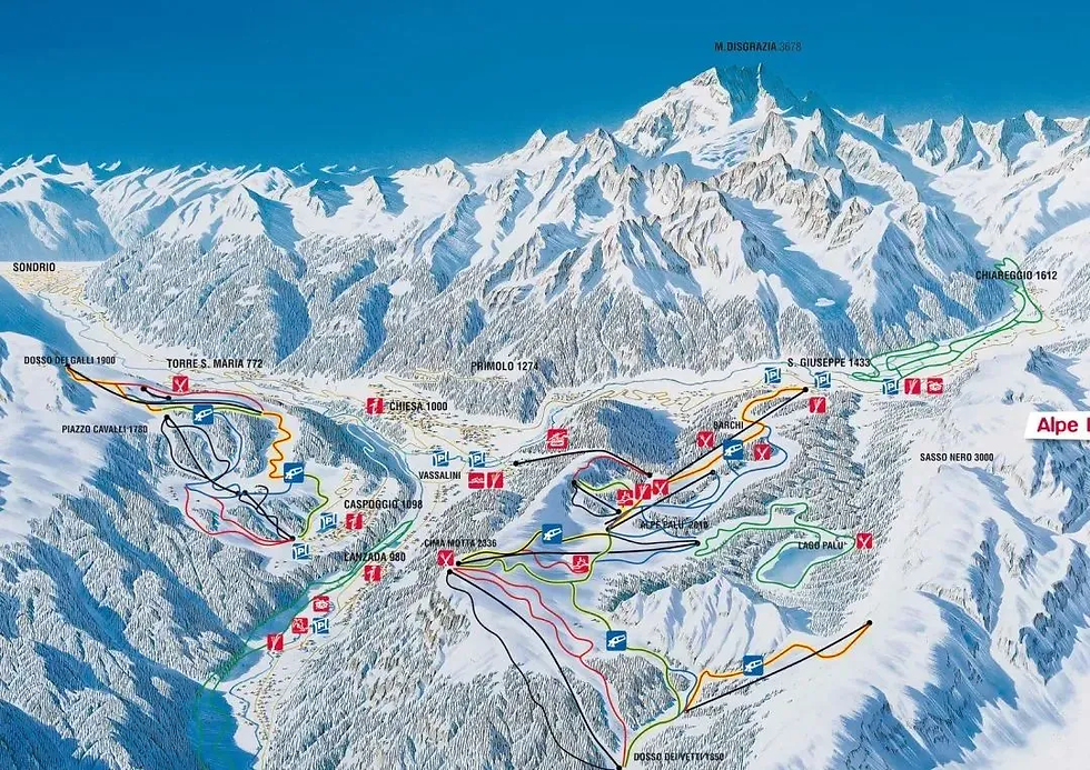 位于山区核心地带的Alpe Palù,这里有着多样化的雪道选择,难度层次丰富,无论是初学者还是资深滑雪者,都能找到适合自己的挑战。同时,四周环绕着令人屏息的自然美景,纯净的高山环境让您尽情沉浸在冬日仙境中。